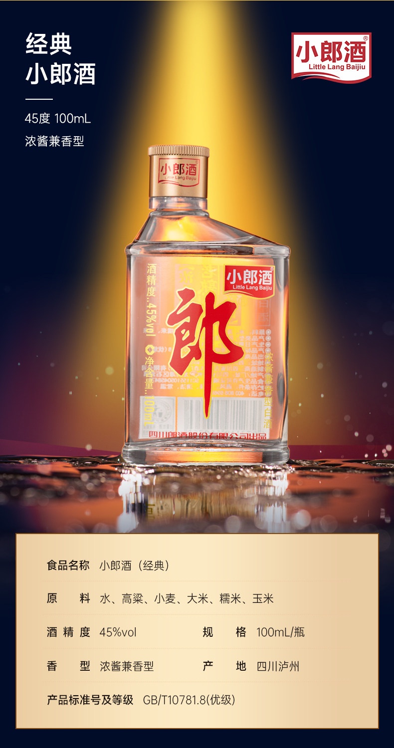 郎酒经典小郎酒歪嘴45度浓酱兼香型小瓶白酒100ml