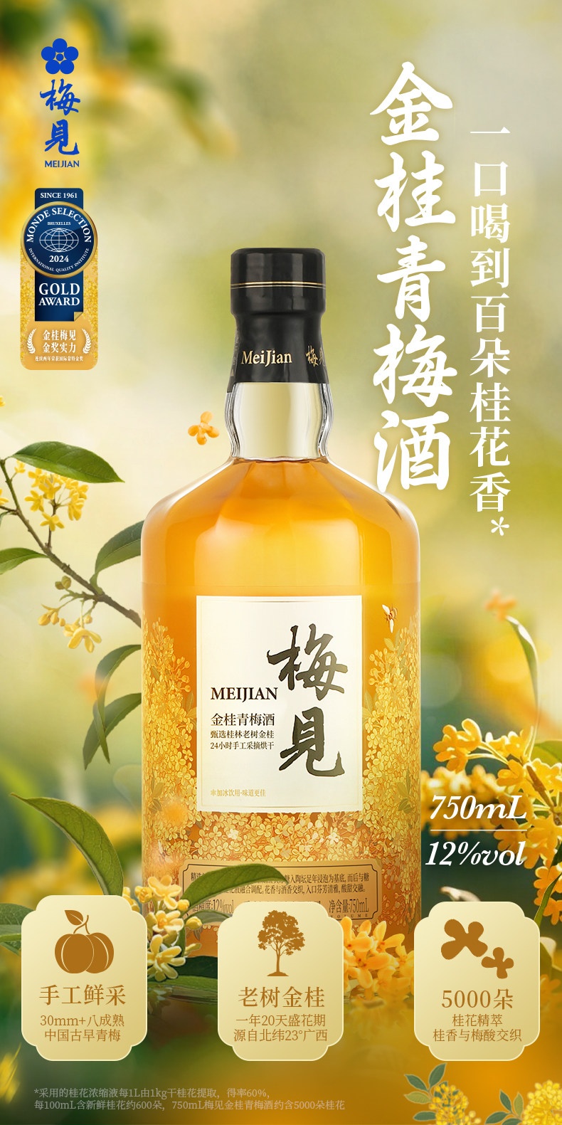 梅见金桂风味青梅酒12度750ml