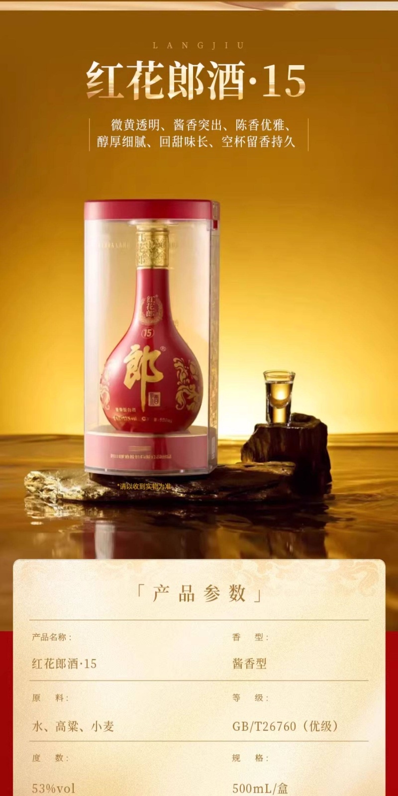 郎酒 红花郎酒·15 酱香型白酒 53度 500mL