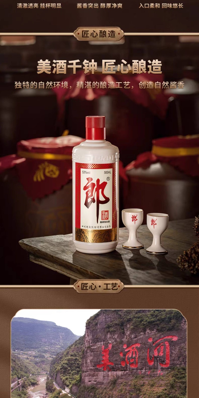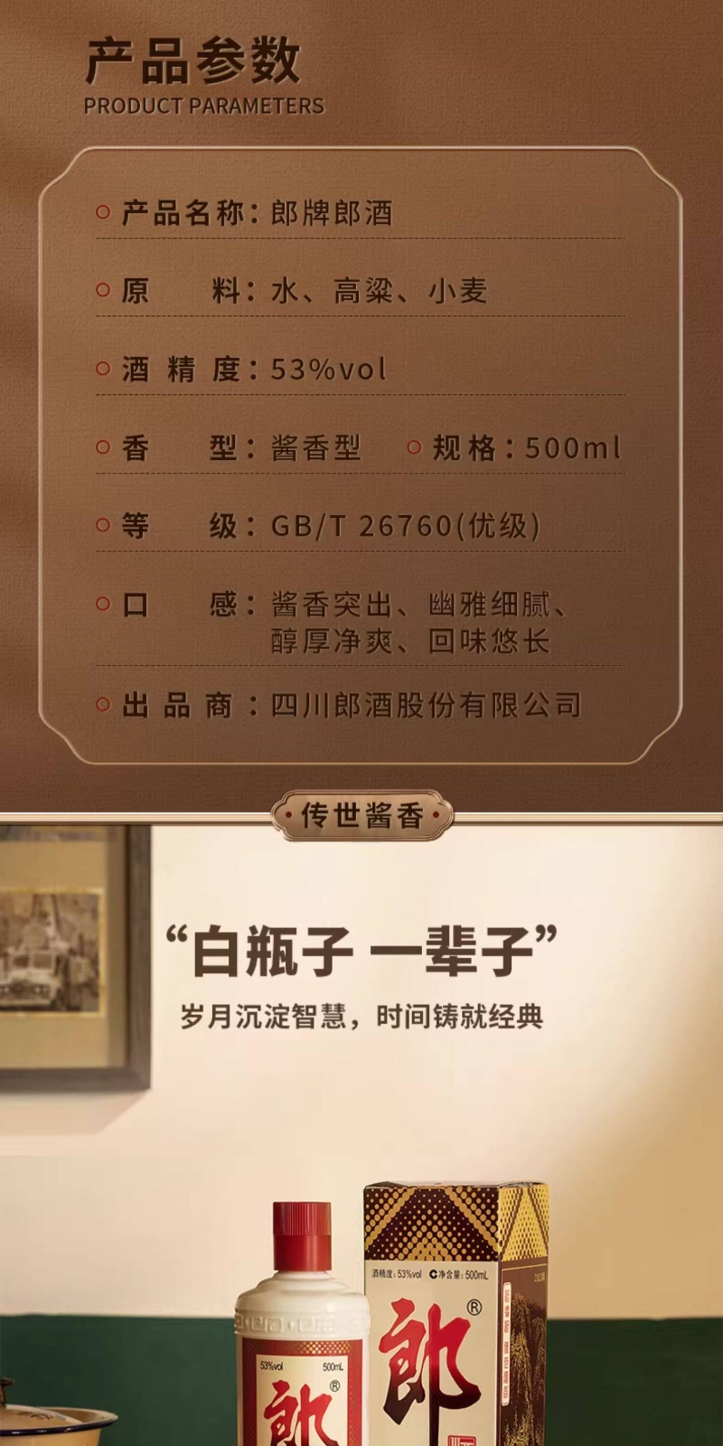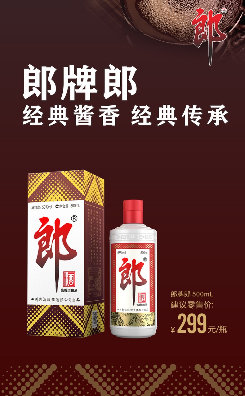 郎酒 郎牌郎酒普郎53度酱香型白酒500ml经典酱香 纯粮酿造